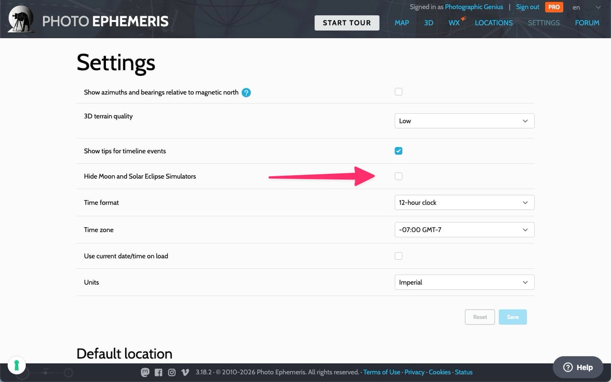 - Cochez Masquer les simulateurs de la Lune et des éclipses solaires